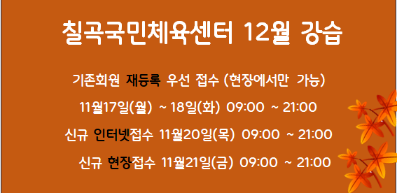 칠곡국민체육센터 12월 강습 프로그램 시간표