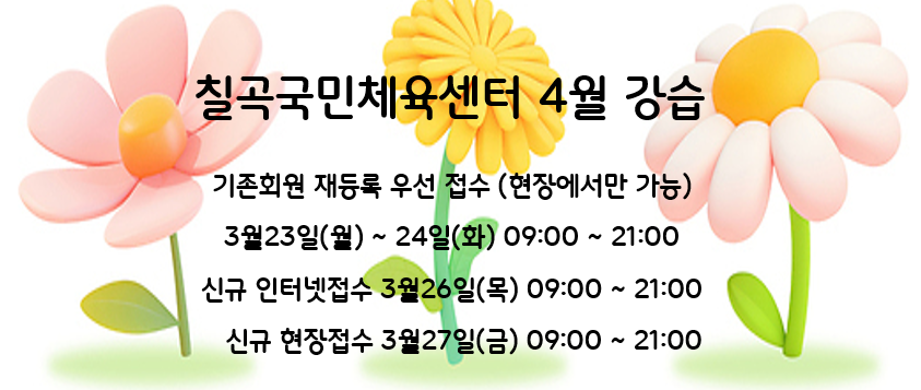 칠곡국민체육센터 4월 강습 프로그램 시간표